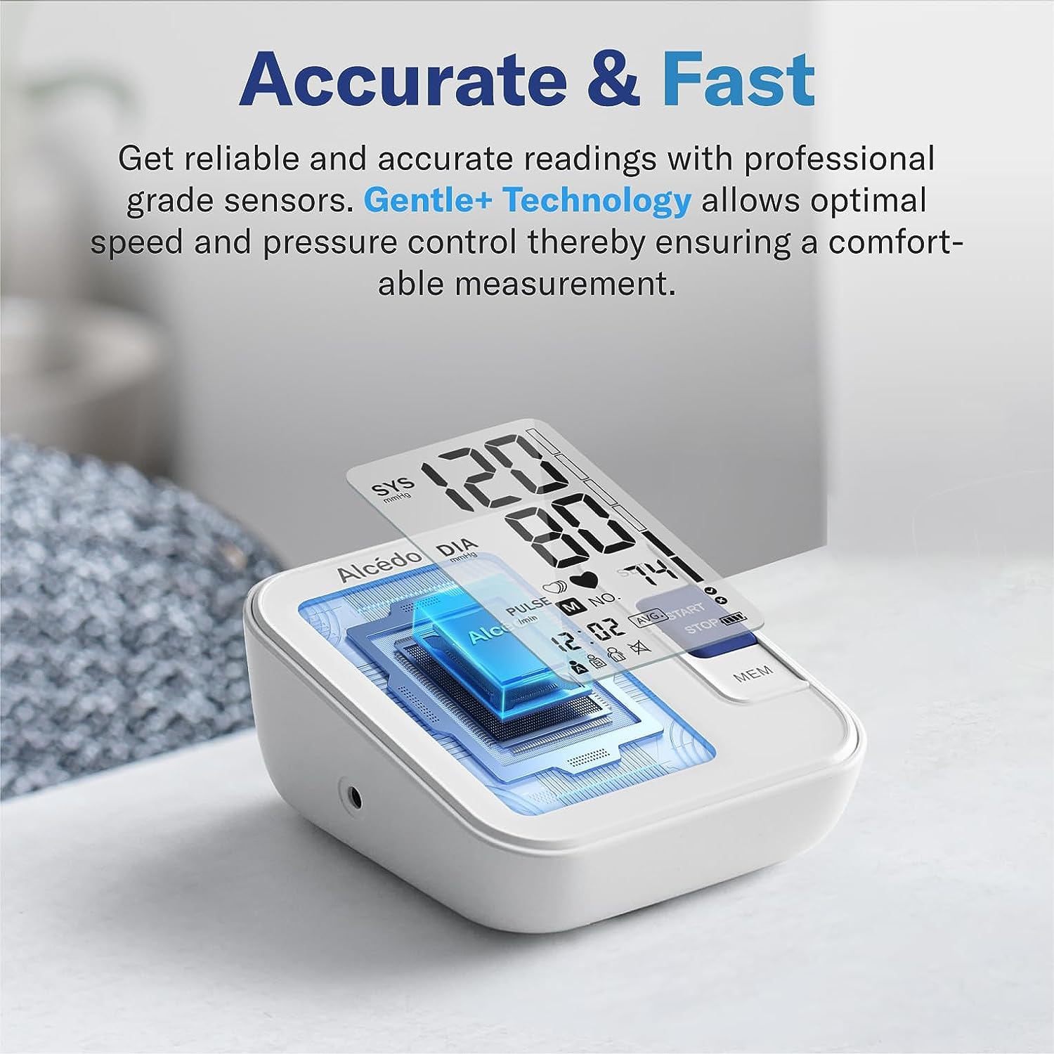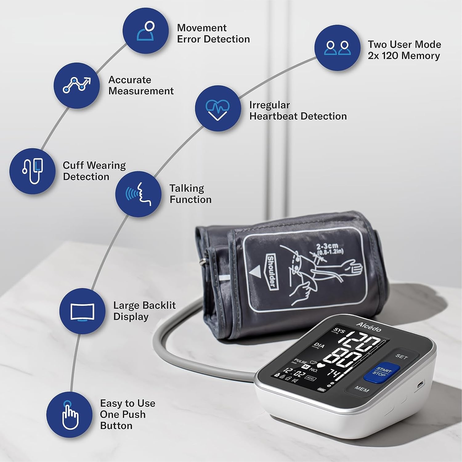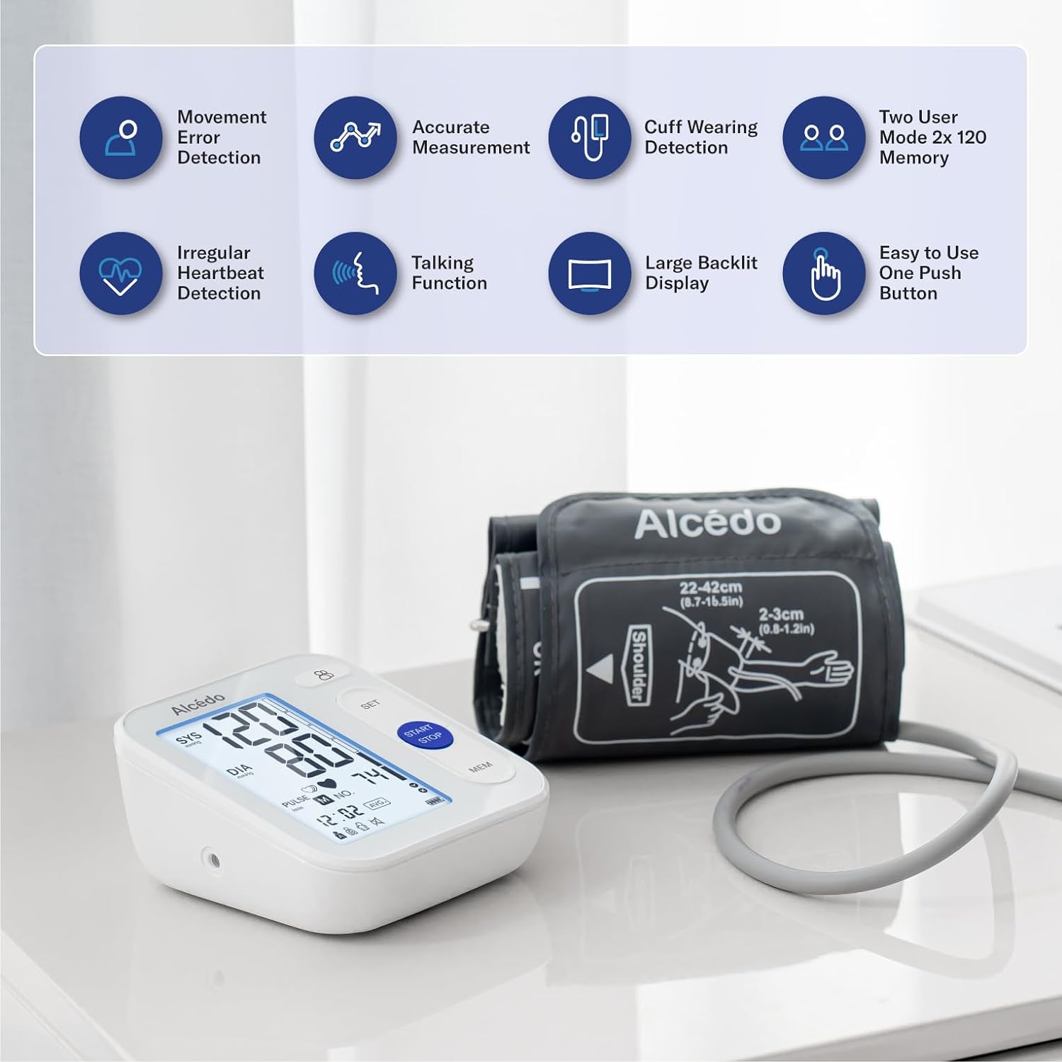Alcedo Blood Pressure Monitor for Home Use, Automatic Digital BP Machine with Large Cuff for Upper Arm, LCD Screen, 2x120 Memory, Talking Function