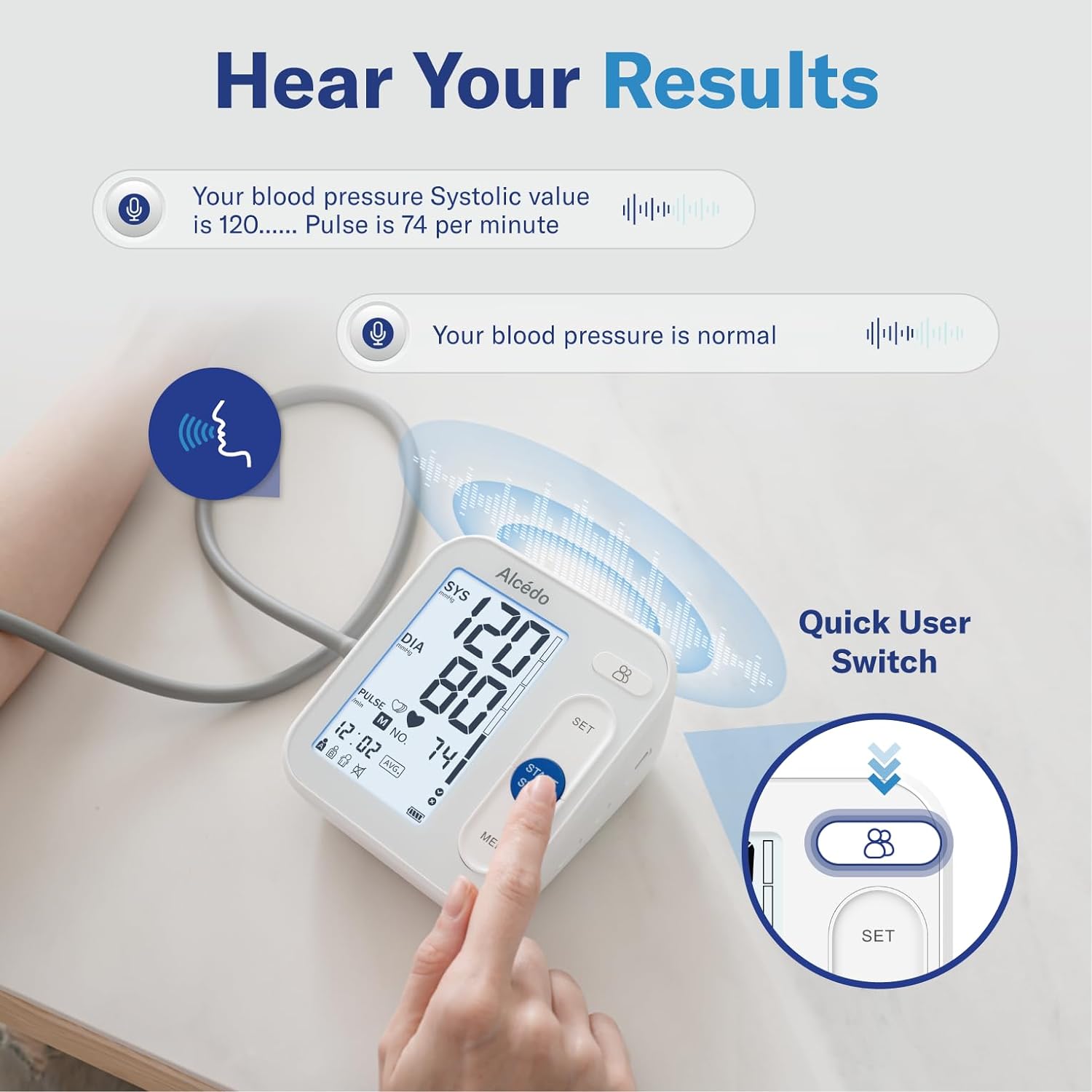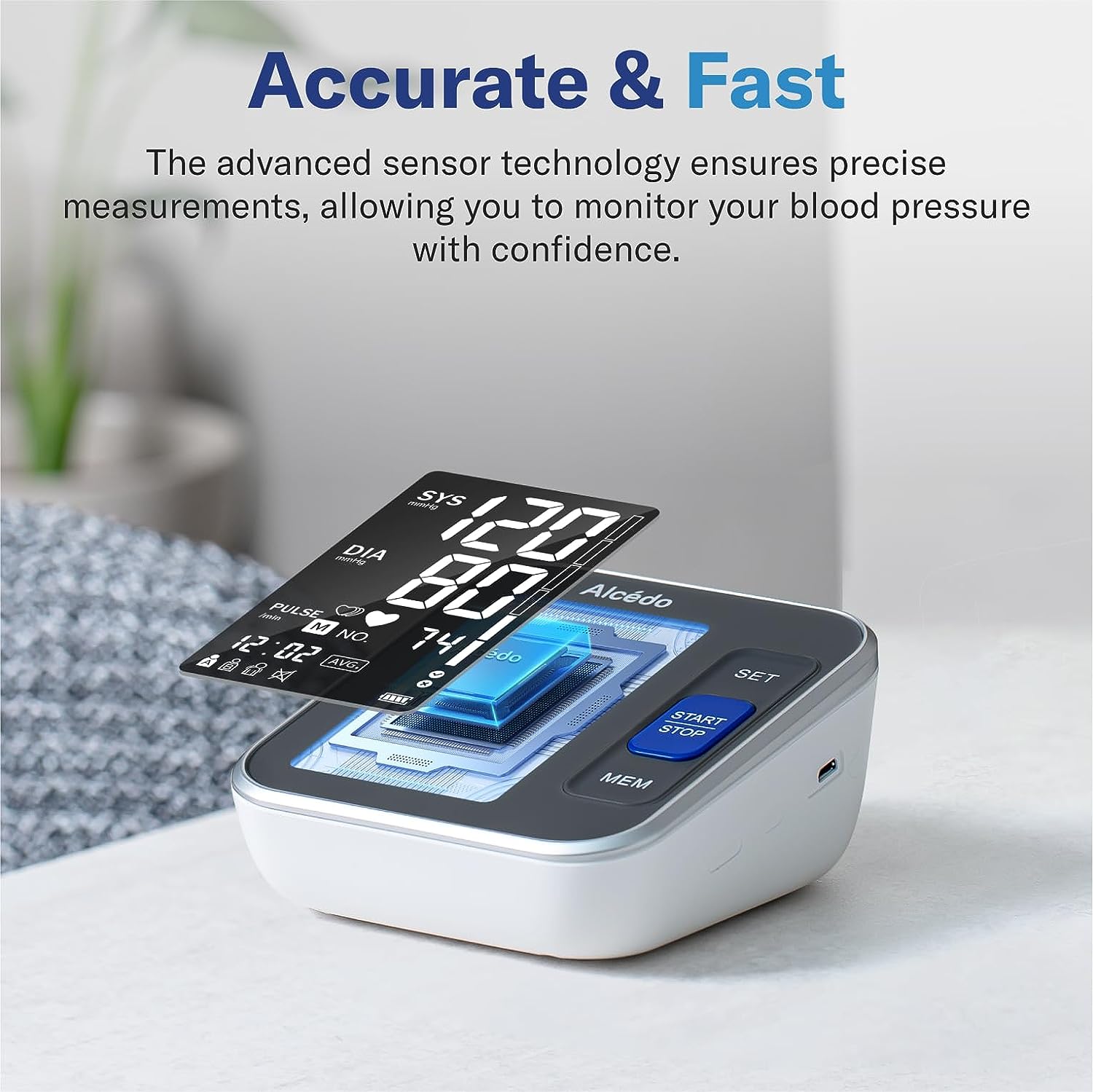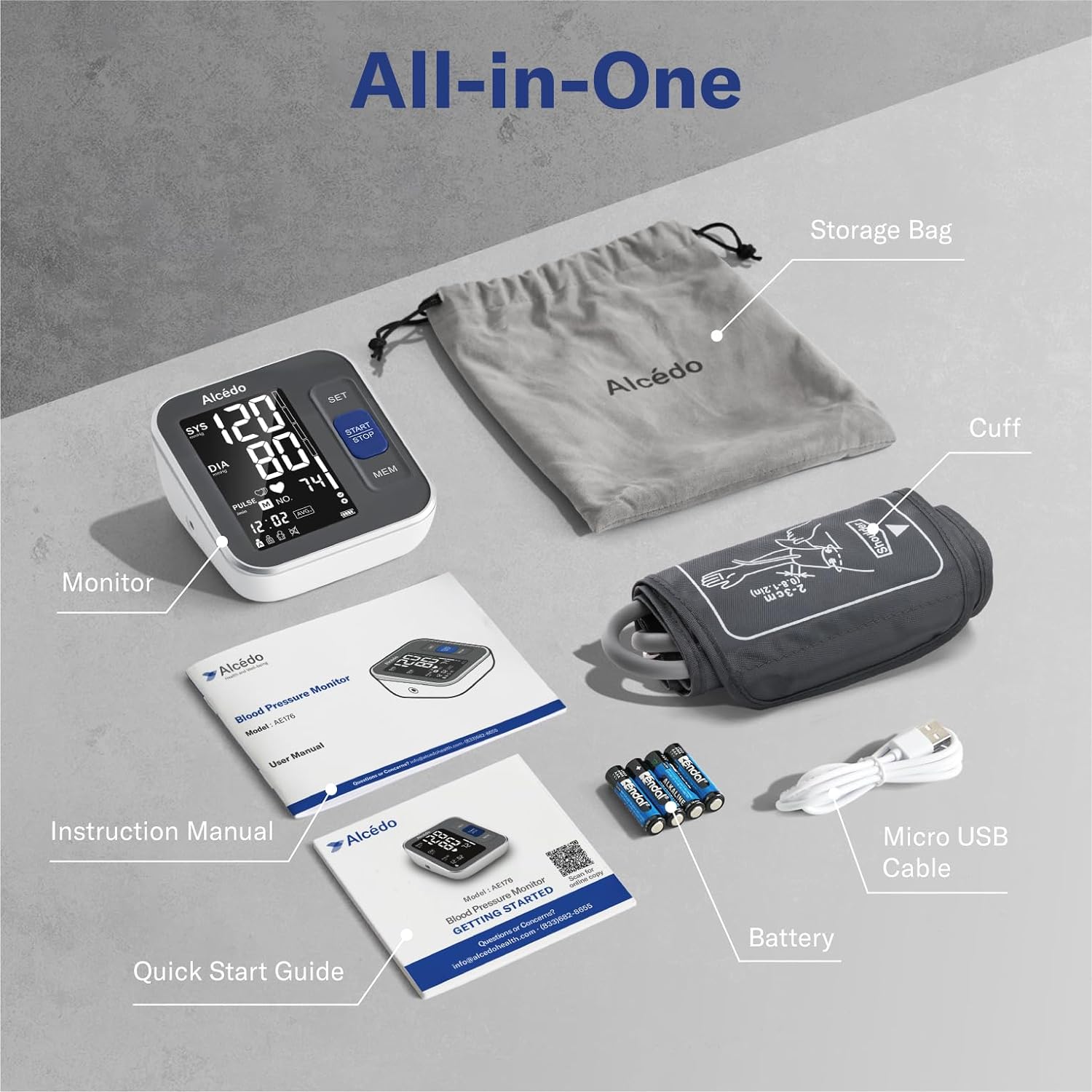 Alcedo Blood Pressure Monitor for Home Use, Automatic Digital BP Machine with Large Cuff for Upper Arm, LCD Screen, 2x120 Memory, Talking Function