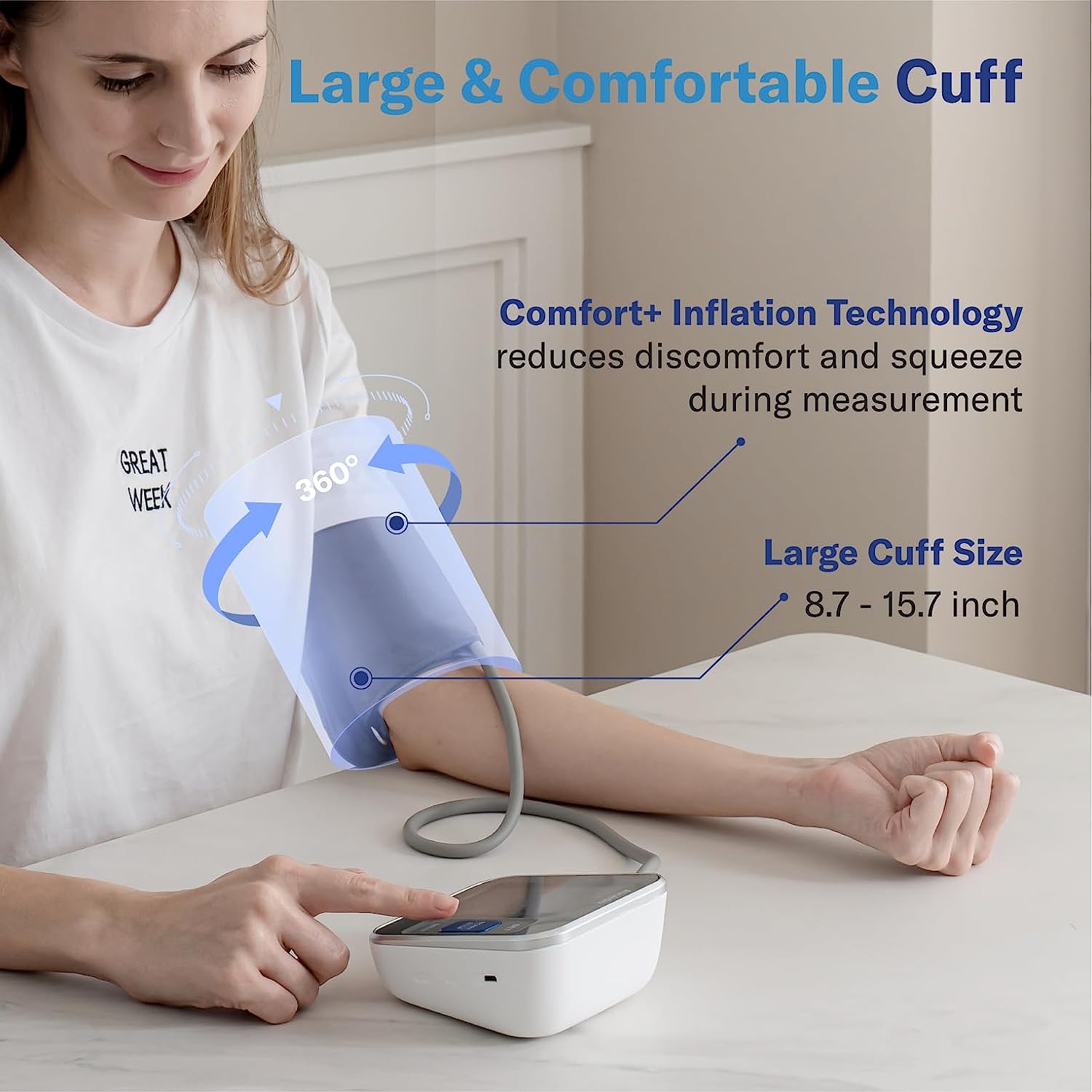 • The durable wide range cuff fits arms 8.7 inch to 15.7 inch in circumference. The ergonomically designed comfortable cuff makes it easy to wrap it around your arm.