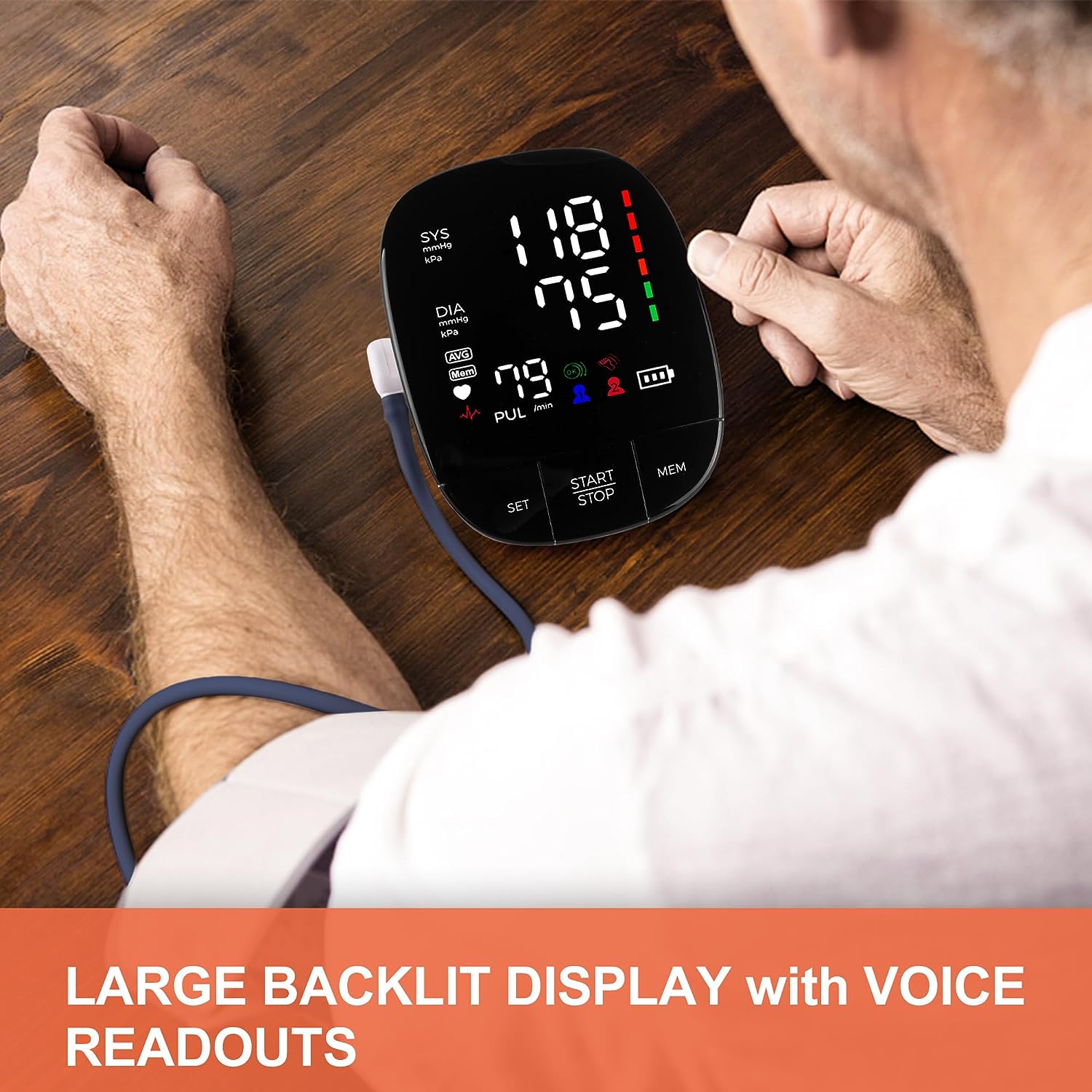 • 【Large Clear LED Display】The cuff has an self-check function, and when properly worn, the cuff self-check icon on the LED screen of the blood pressure monitor will display in green. If there is any movement during the measurement, the LED screen will also show a body movement icon。The blood pressure monitor features a large and easy to read backlit 4.5in LED screen Whether it's day or night, the display remains clear and user-friendly, making it especially suitable for people with poor vision。