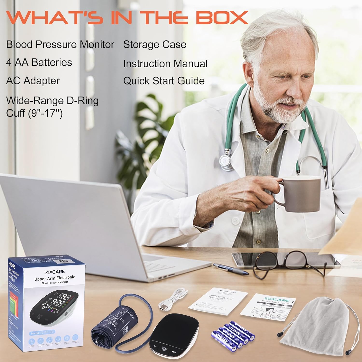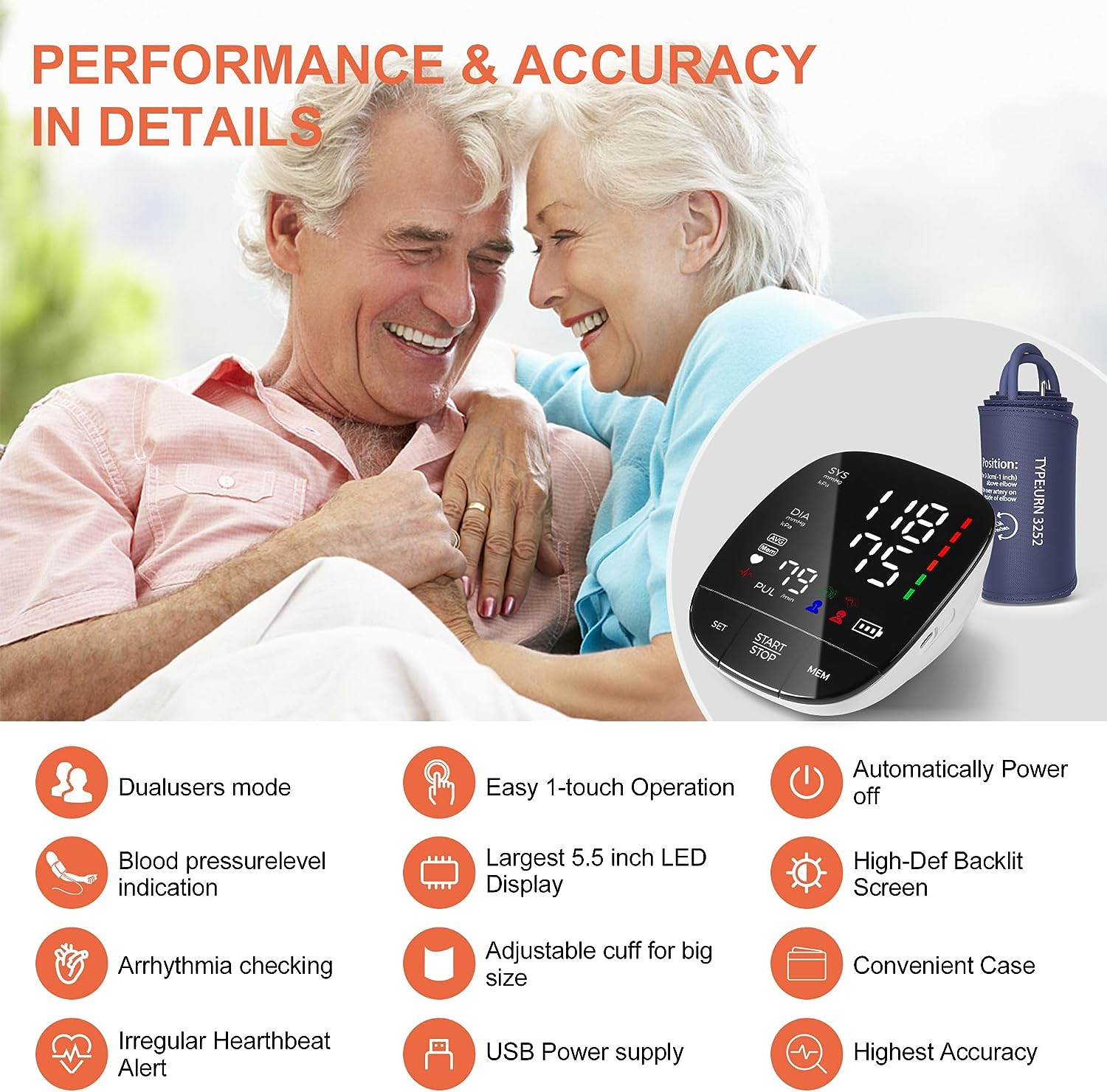 Blood Pressure Monitor Automatic Digital Upper Arm Blood Pressure Monitors for Home Use Led Large Font Screen 4.5 in Backlit