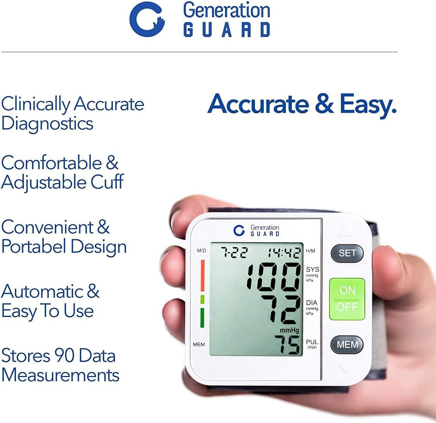 Clinical Automatic Blood Pressure Monitor FDA Approved by Generation Guard with Portable Case Irregular Heartbeat BP and Adjustable Wrist Cuff Perfect for Health Monitoring