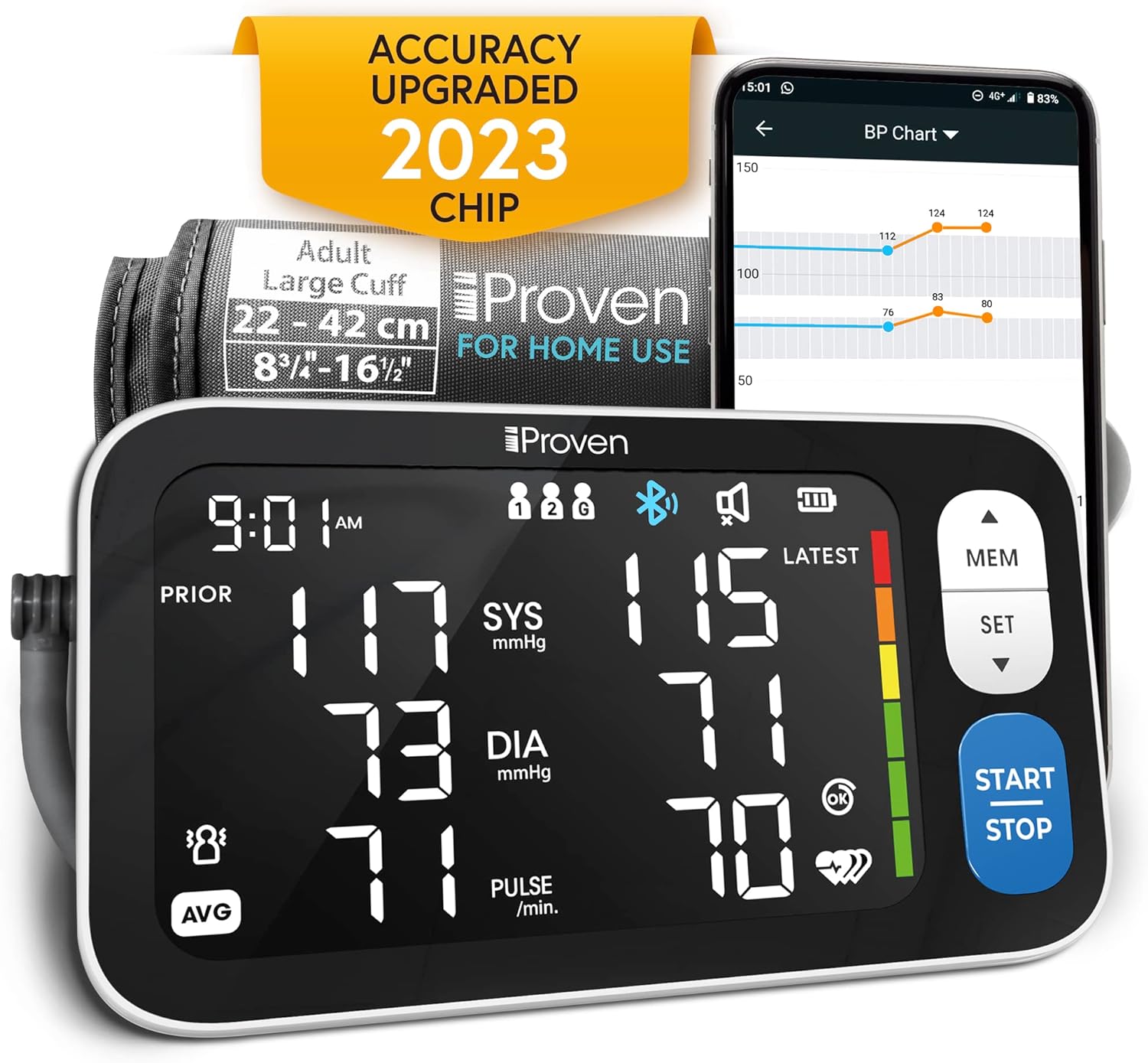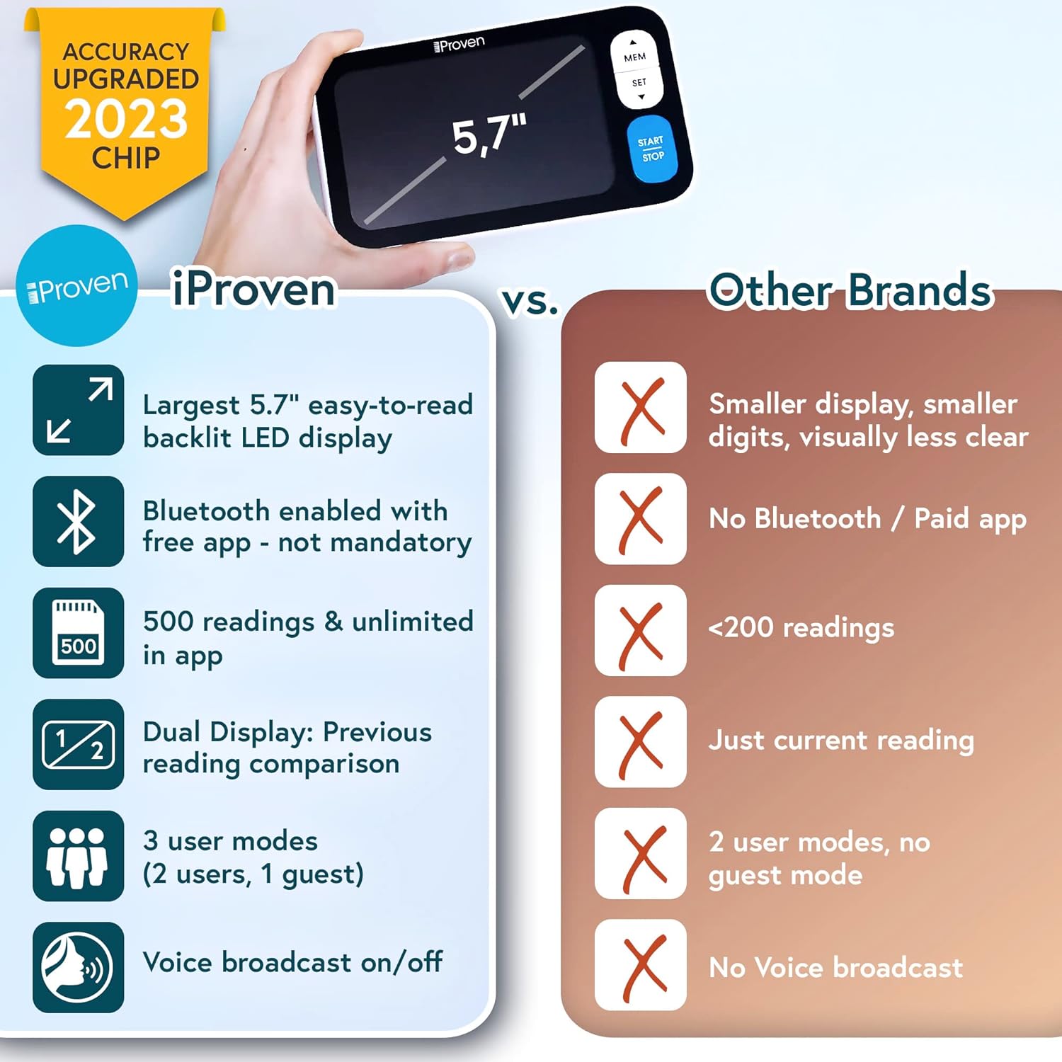 IPROVEN New 2023 Smart Upper Arm Blood Pressure Monitor - Home Use, 500 Memory Sets - Large Adjustable Cuff - Largest Widescreen Backlit Display - Bluetooth App for iOS & Android