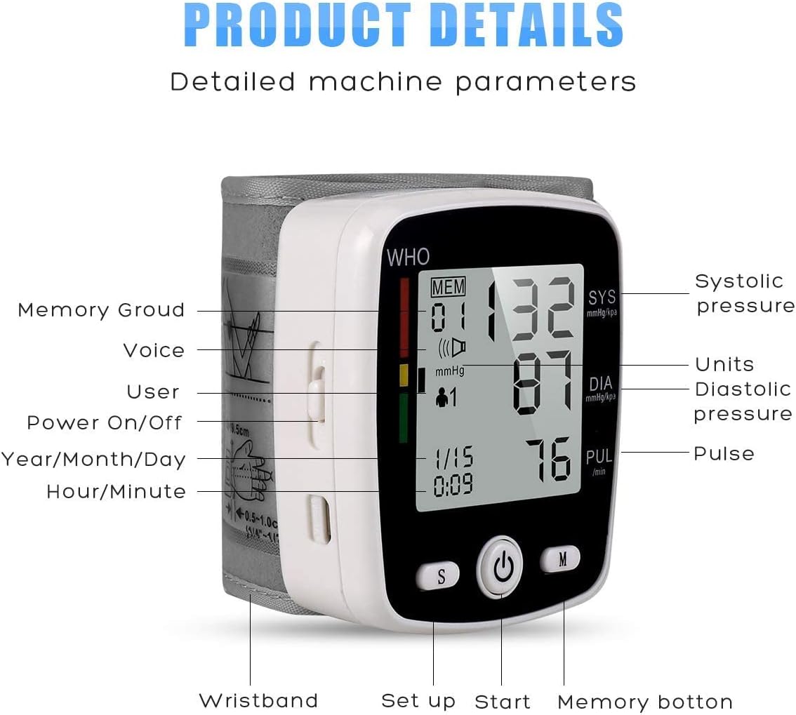 • 😊Comfortable and Simple to Adjust, the Blood pressure cuff fits wrist circumferences from 5.4 inches to 7.7 inches, pre-formed cuff make sure you can easy to wear it by yourself.