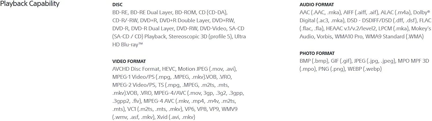Front row, center stage. This 4K Ultra HD Blu ray player delivers the impeccable clarity of 4K and stunning detail of high dynamic range. Get the best seat in the house and lose yourself in incredible picture quality and advanced surround sound. Play almost any media disc, or stream 4K content from your favorite streaming services.