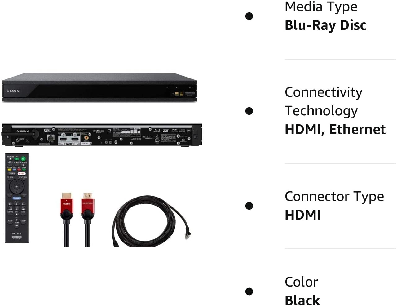 Sony UBP-X800M2 4K Ultra HD Blu-ray Player with HDR Bundle with 6-Feet High Speed Premium HDMI Cables and Ethernet Cable (3 Items)