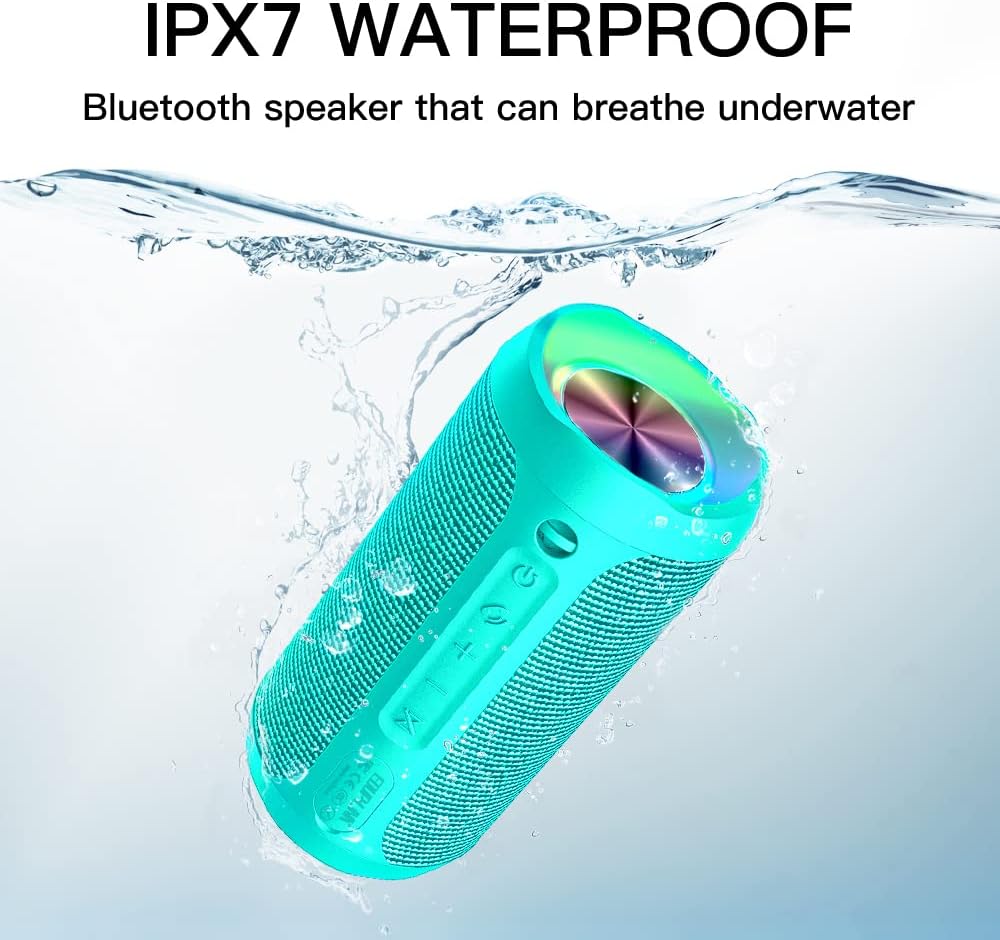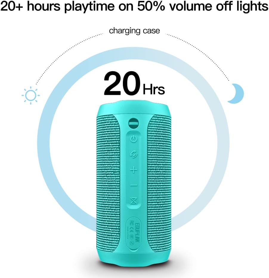 EDUPLINK Waterproof Portable Bluetooth Speaker - 20W Louder Wireless Speaker with 20 Hours Playtime, TWS Pairing, RGB Lights, and TF Slot - Perfect for Beach and Pool, Teal