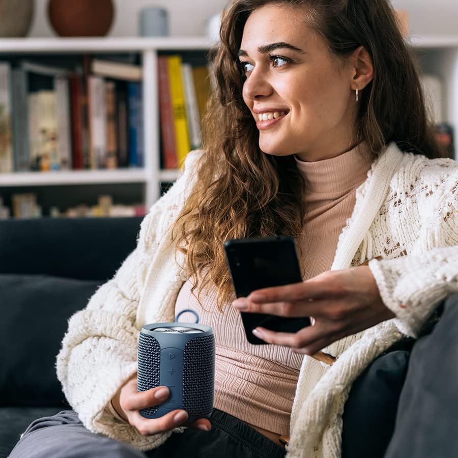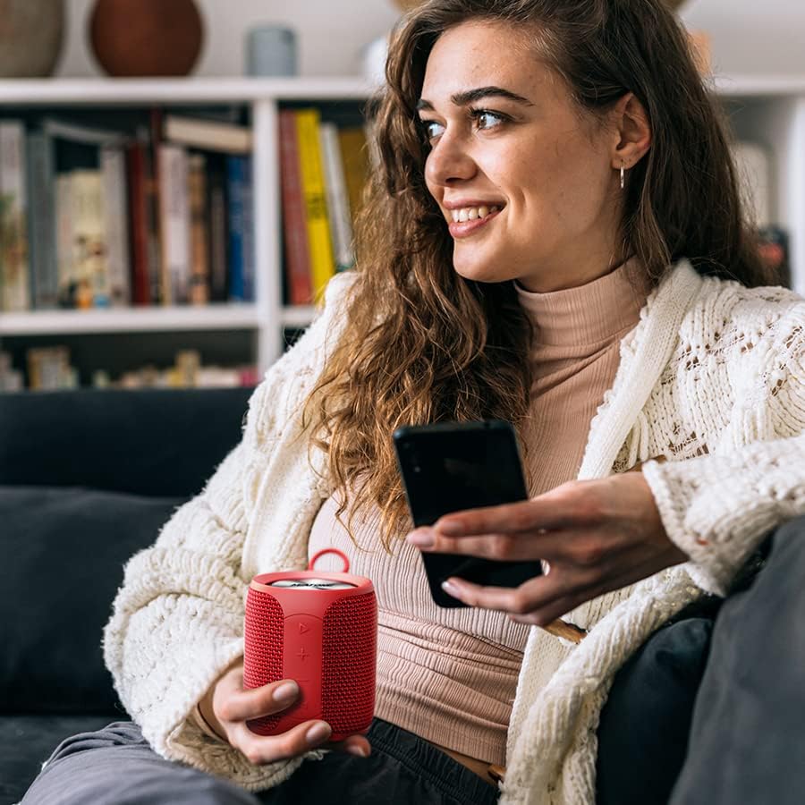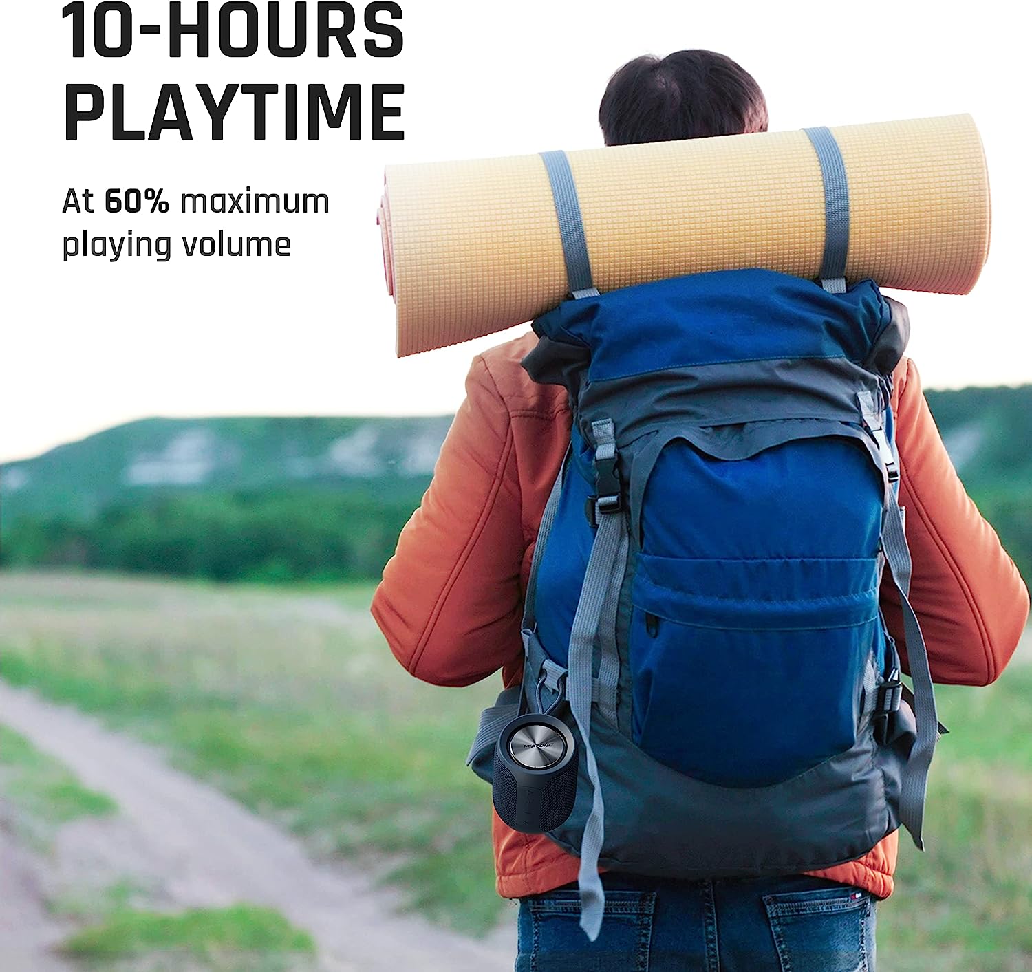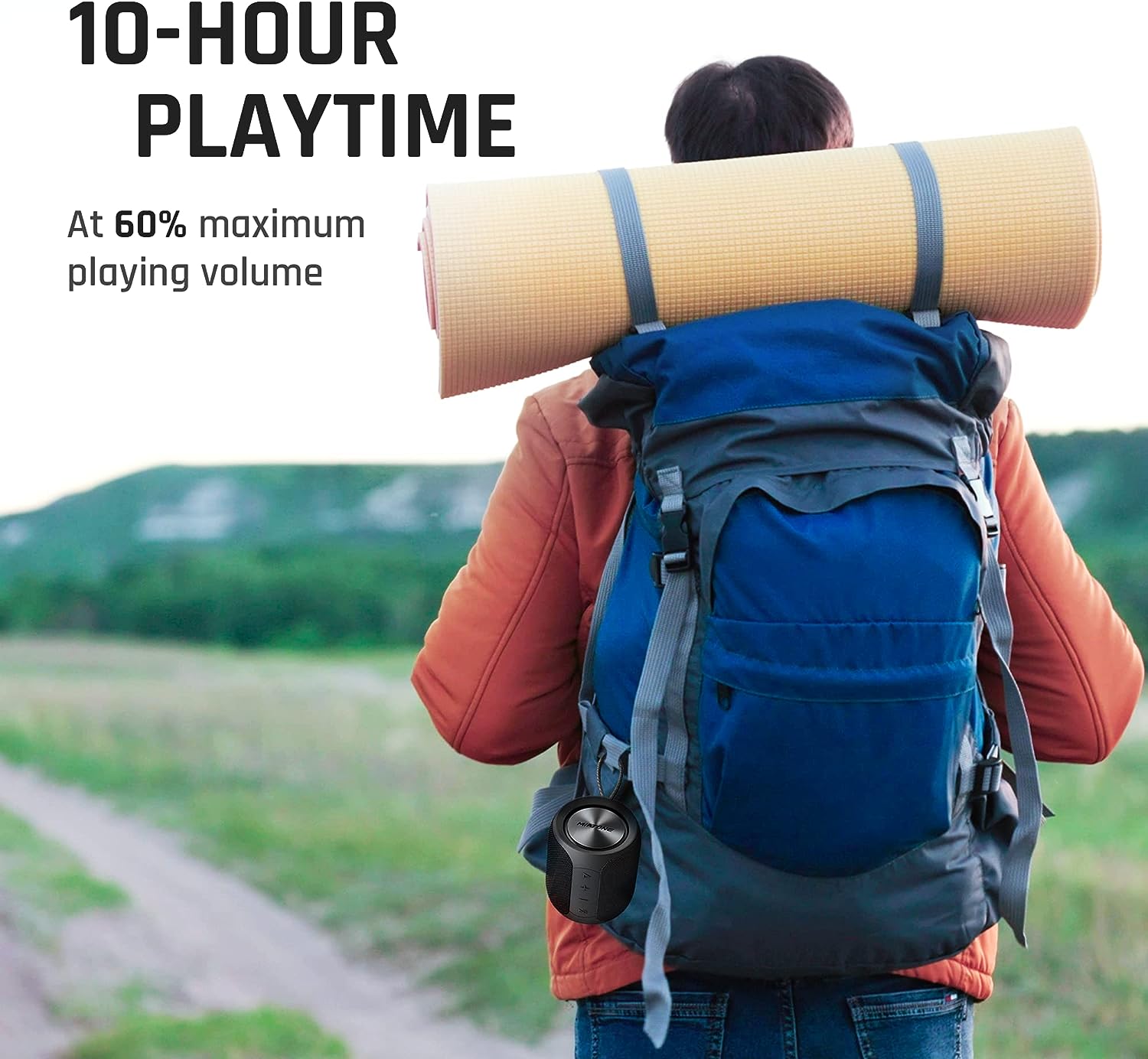 • PORTABLE & LONG BATTERY LIFE: Small size (3.7*3.2in) and light weight (0.85 lbs), it can be easily hung on the bag or luggage. The 2500mAh lithium battery can let it play for 10 hours at 60% volume, which is enough to meet our outdoor sports needs. This is a great gift for women men!