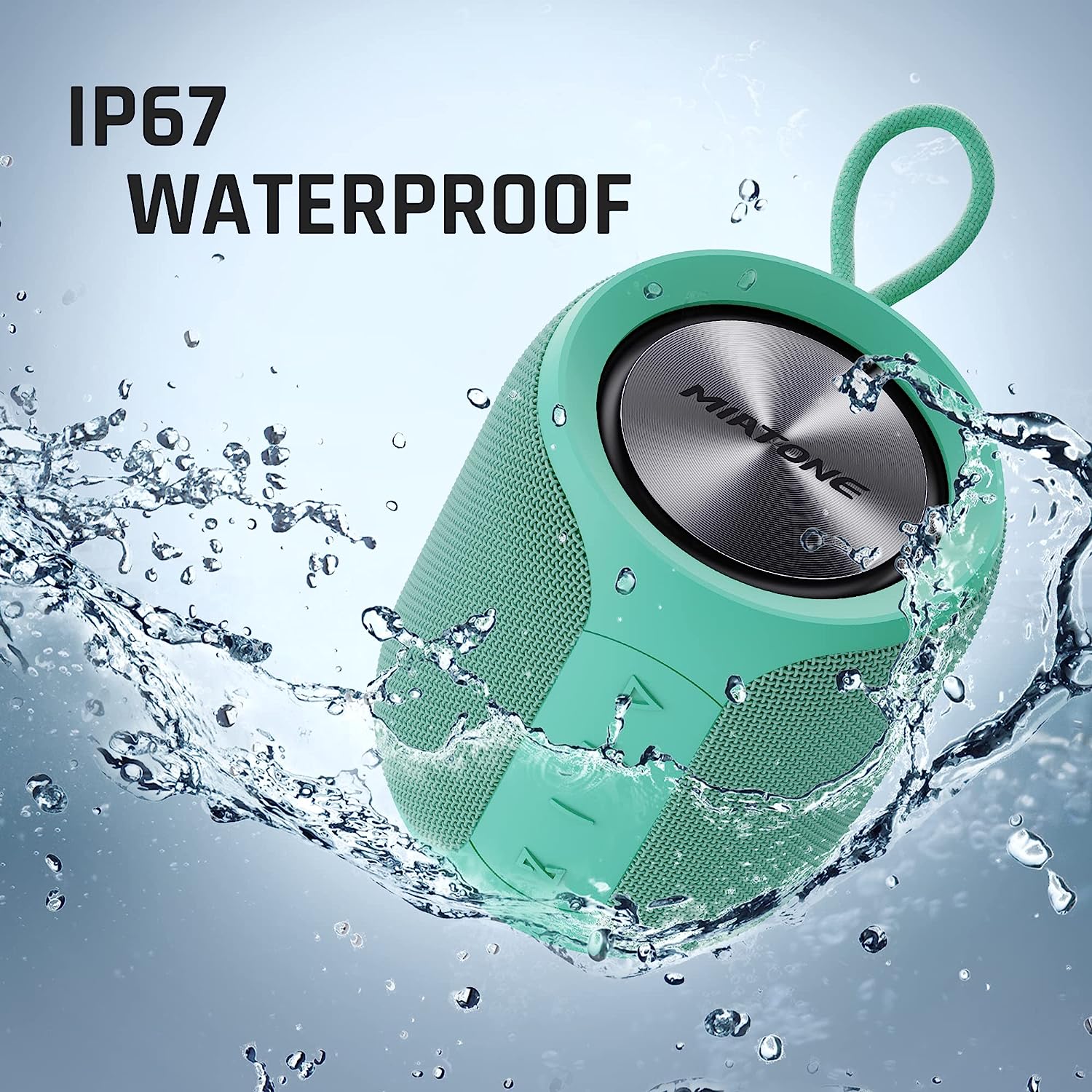 • IP67 WATERPROOF: This waterproof speaker has passed the IPX7 certification, it is not afraid of water splashes, dust, snow, and spills. So this speaker is perfect for outdoor sports, such as skiing, golfing, biking, hiking and camping etc.