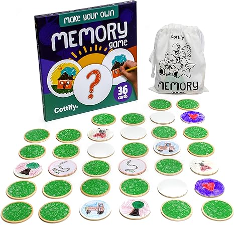 Create Your Own Memory Game 36pc Art & Craft Kit, Durable & Scratch-Resistant Blank Wooden Cards, Replacement Stickers, Matching Games for Toddlers 3-5 and Up, Blank Board Game