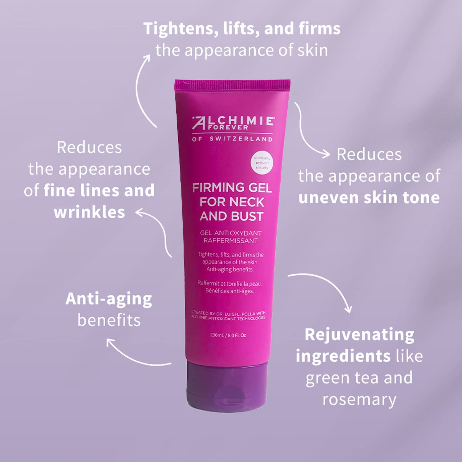 Alchimie Forever Firming Gel For Neck And Bust | Tightens, Lifts and Firms. Evens Tone | 8 Fl Oz