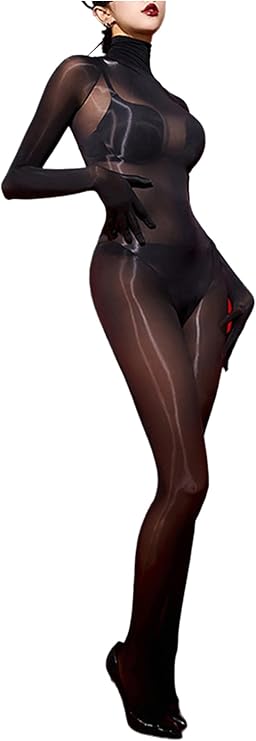Women's Long Sleeves Full Bodystocking Bodysuits Ice Silky One Piece Nylon Sheer Jumpsuits