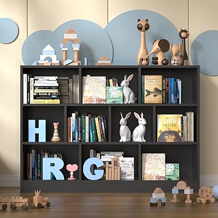 Cozy Castle Black Bookshelf, 3-Tier Open Shelf Bookcase, 10 Cube Storage Organizer with Anti-Tilt Device, Freestanding Horizontal Bookshelf Cube Shelf for Bedroom, Living Room, Office