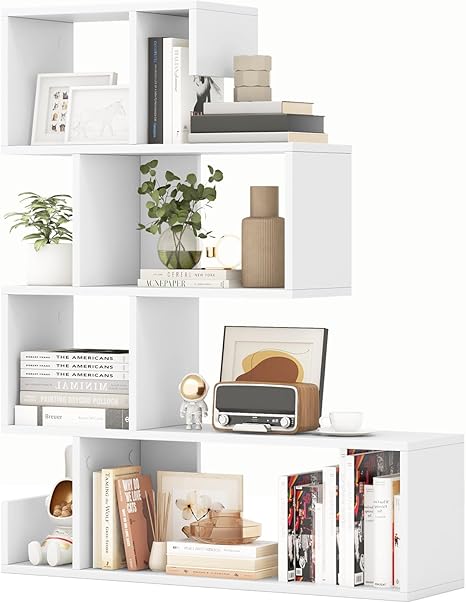 Giantex 5-Tier S-Shaped Bookshelf, Geometric Bookcase w/Open Cubes, Modern Decorative Display Shelf w/Anti-Toppling Kits, Freestanding Storage Rack for Living Room, Study, Home, Office, White