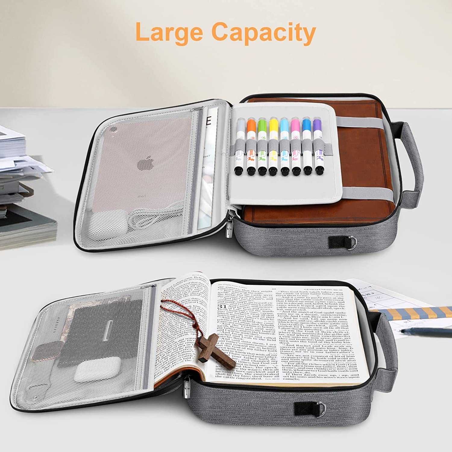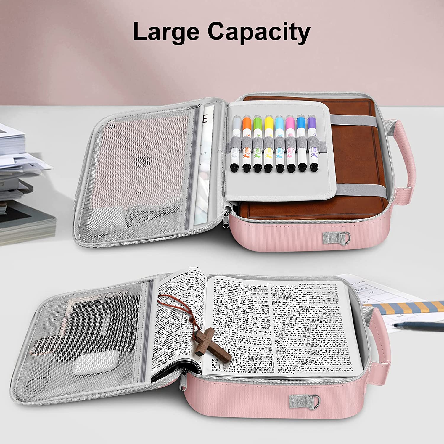 • Not Just a Bible Cover: FINPAC bible cover bag can be used as a Journal Supplies Organizer, Pen Case, Colored Pencil Bag, Electronic Organizer Bag, Briefcase, Book Cover or Cosmetic Bag. It is a perfect storage bag for students or kids.