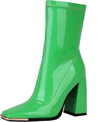 Reitoye Women's Mid Calf Boots Comfy Square Closed Toe Heel Boot Zipper Short Ankle Booties