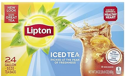 Lipton Iced Tea Bags, Black Tea, Unsweetended Iced Tea, 24 Gallon-Sized Tea Bags