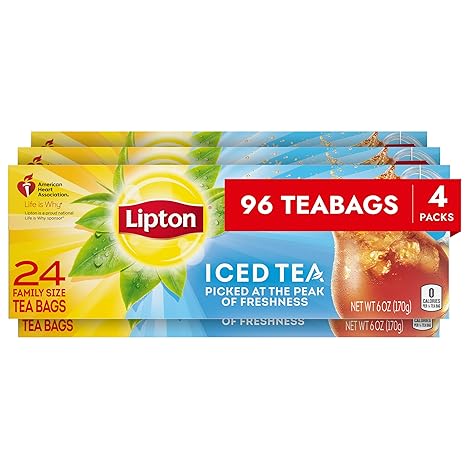 Lipton Unsweetened Iced Tea Bags, Family-Sized Tea Bags, 96 Total Tea Bags (24ct - Pack of 4)
