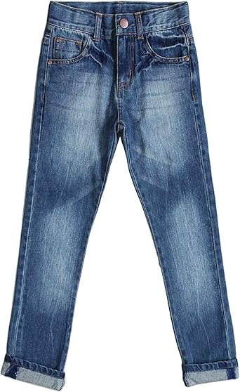 Bienzoe Boys Adjustable Waist Jeans: Cowboy Low Waist Ripped Cotton Straight Slim Denim Pant