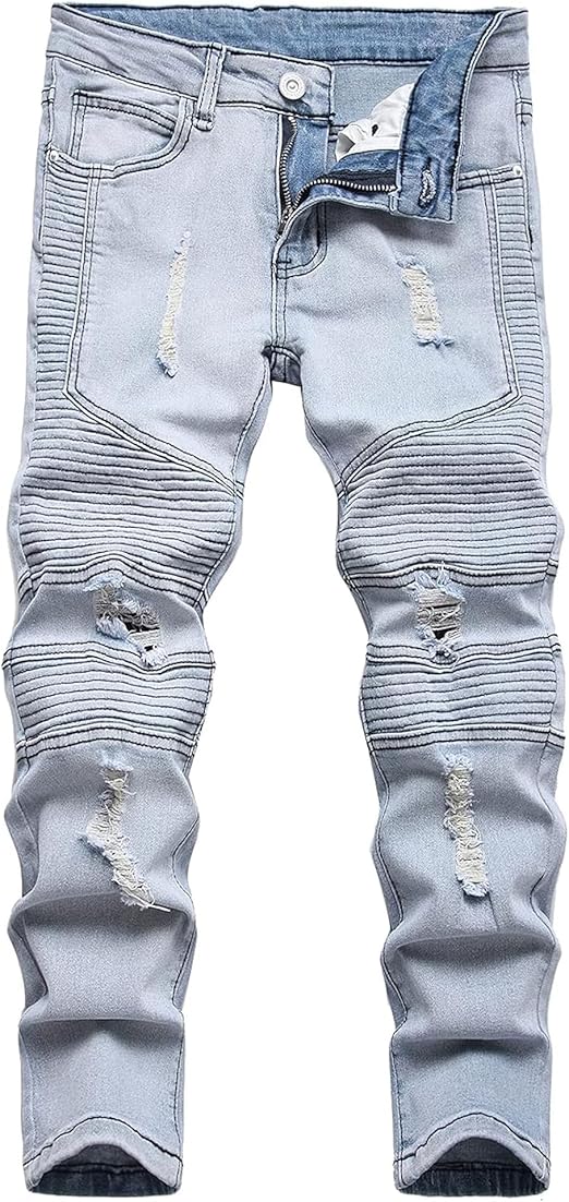 Boy's Ripped Stretch Distressed Slim Fit Jeans Skinny Fashion Denim Pants