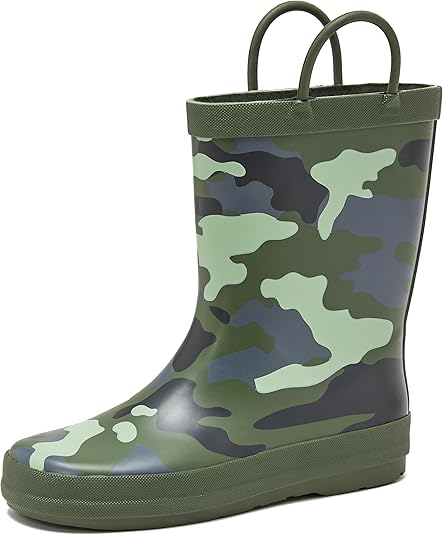 Lands' End Boys and Girls Waterproof Boots Kids and Toddler Rain Boots - Girls and Boys Rubber Rain Boots Kids Size 5 Toddler to 7 Big Kid, Slip On Girls and Boys Rain Boots with Handles