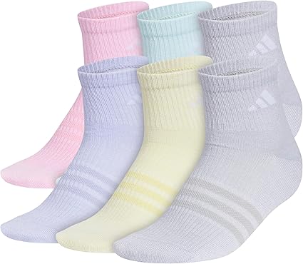 adidas Boys' Kids Superlite 3.0 Athletic Quarter Socks (6-Pair) Ankle High Fit with Targeted Padding and Arch Compression