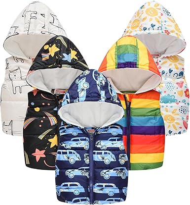 Boys Girls Puffer Down Vest Toddler Kids Hooded Zip Sleeveless Jacket Winter Coat Bear Ear Coat Baby