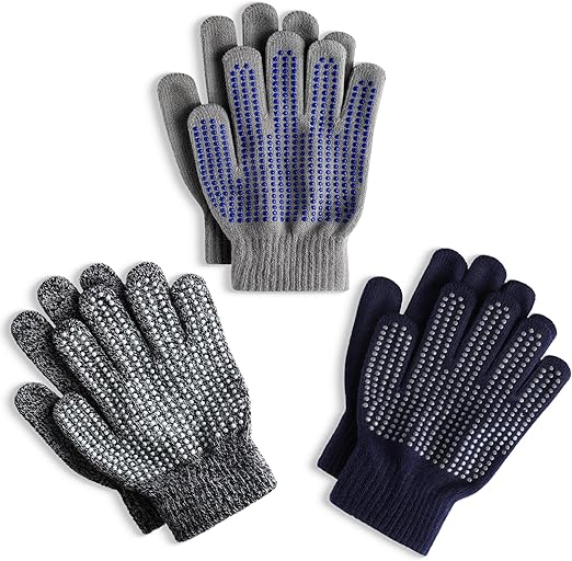 Glooarm 3 Pairs Kids Gloves Winter Gripper Knit Magic Gloves Stretch Warm Cold Weather Gloves for Boys Girls 4-12 Years