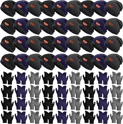 Toulite 72 Pcs Kids Winter Hats Gloves Bulk Warm Knitted fleece Beanie Knitted Gloves Cold Weather for Boys Girls Homeless