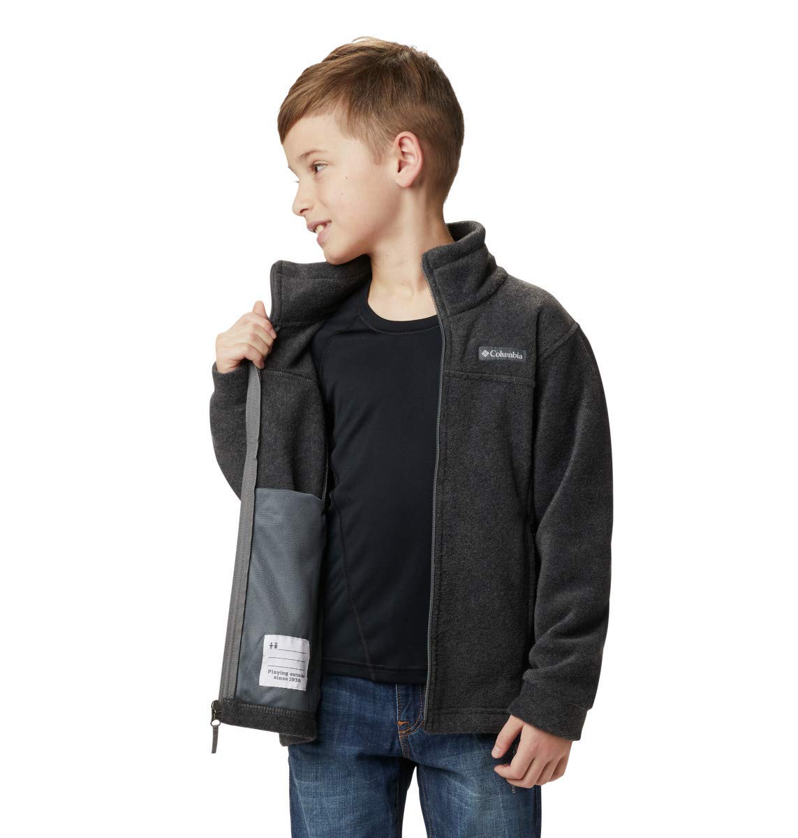 Details: This full-zip fleece jacket is the perfect addition to their everyday wear—whether worn alone or as an extra layer. Your boy will be warm and care-free in this jacket crafted from our super deep 250g fleece. Whether worn on its own, or used as layer, your child will find great 3 season use in this everyday coat. Columbia offers this boy’s jacket in multiple colors and sizes. Regular Fit. To ensure the size you choose is right, utilize our sizing chart and the following measurement instructions: For the sleeves, start at the center back of your neck and measure across the shoulder and down to the sleeve. If you come up with a partial number, round up to the next even number. For the chest, measure at the fullest part of the chest, under the armpits and over the shoulder blades, keeping the tape measure firm and level.