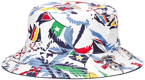 POLO RALPH LAUREN Little Boys Reversible Cotton Oxford Bucket Hat (Navy(8001)/Multi, 4-7)