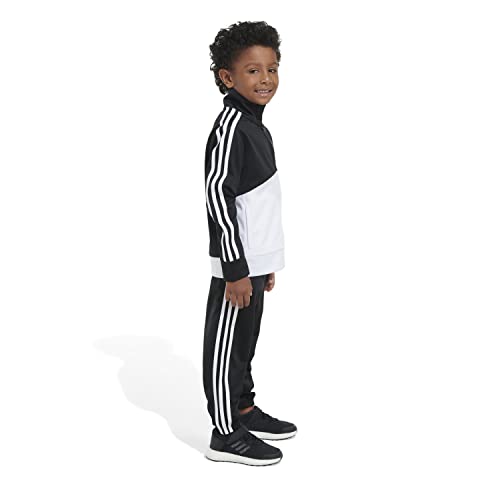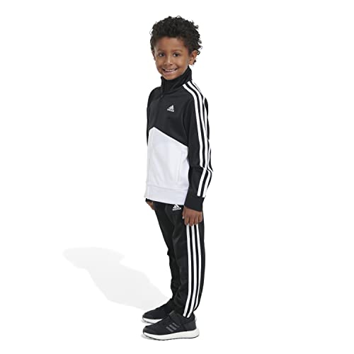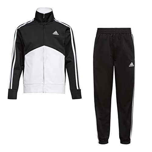 Details: Pass down adidas track style to your young athlete. This boys' two-piece set includes a full-zip jacket and matching pants. Smooth tricot fabric gives it a classic sporty look.