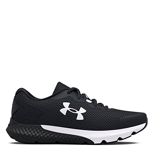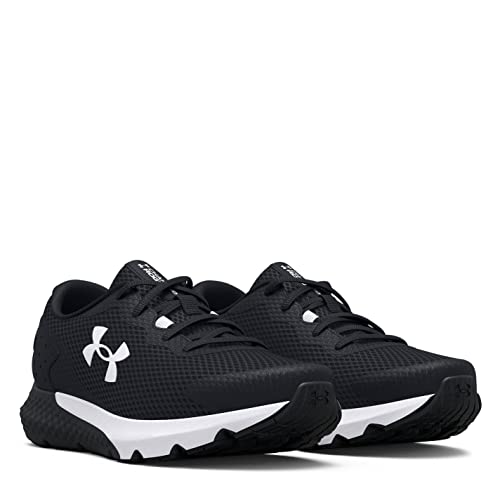 Under Armour Boys Charged Rogue 3 Running Shoe, Black (001)/White, 6.5 Big Kid