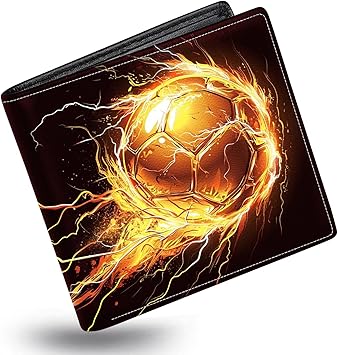 Boys Wallet for Kids, Kids Wallets for Teen 9-12 8-12 12-14 with Card, Funny Soccer Leather Bifold Rfid Blocking, Black Purse for Men Boy Male Youth Guys Christmas Gifts Birthday Present