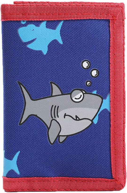 Leyeve RFID Trifold Canvas Outdoor lovely cartoon Wallet for Kids, Teen Wallet with Coin Pocket, KIds Wallets for Boys, Wallet with Magic Sticker -Sharks