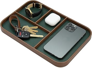 MUUJEE Leather Catchall Multitray (Design 3) - 11.65 x 7.75 x 0.8, Nightstand Entryway Bedside Dump Tray Valet Organizer for Keys Phone Wallet Watch Glasses Pens, Office Desk Accessory for Men, Green