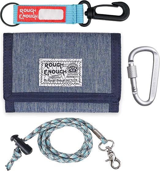 Rough Enough Kids Wallet for Boys Teen Men with Neck Lanyard Keychain in Cool Classic Denim Blue Canvas