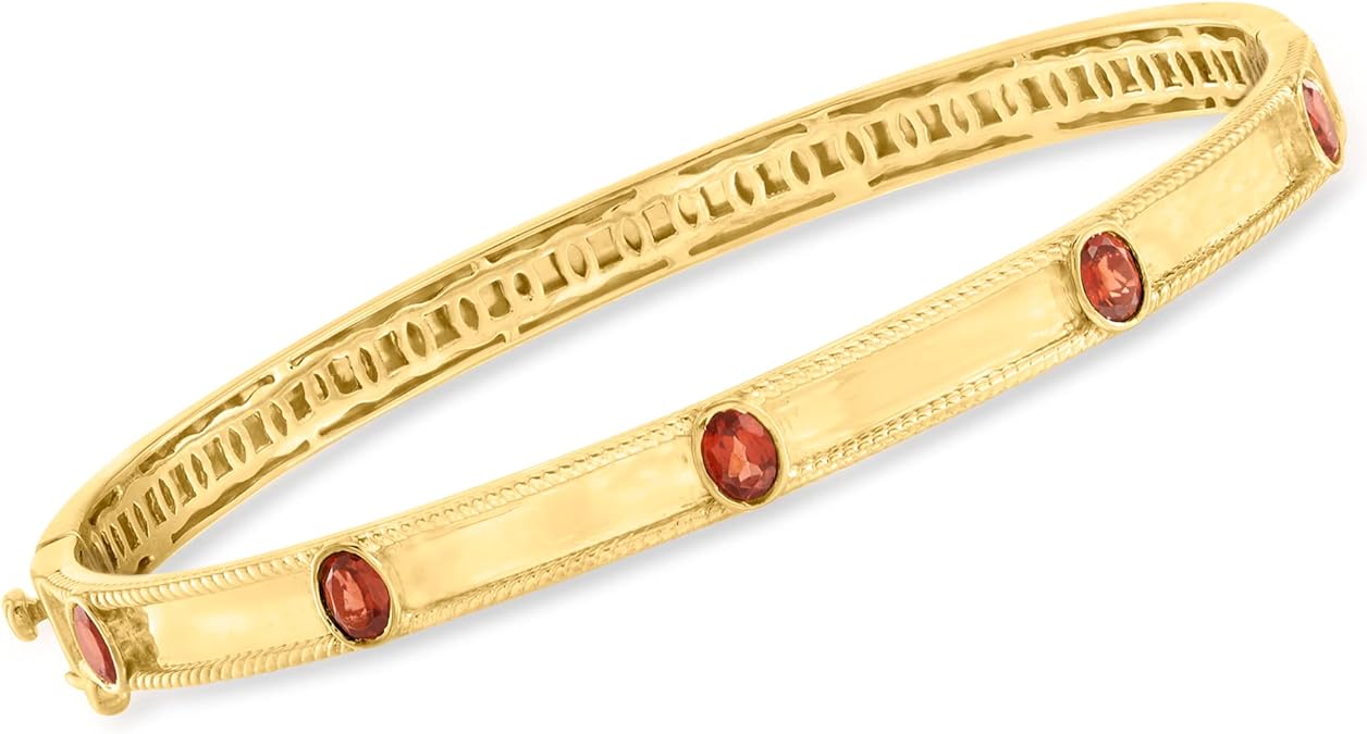 Ross-Simons 0.90 ct. t.w. Garnet Station Bangle Bracelet in 18kt Gold Over Sterling. 7 inches