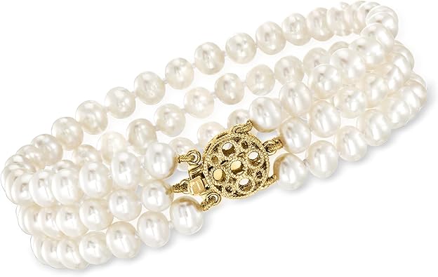 Ross-Simons 5-5.5mm Cultured Pearl 3-Strand Bracelet With 14kt Yellow Gold. 8 inches