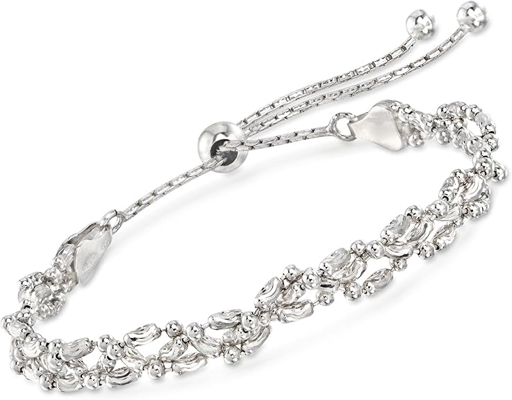Ross-Simons Italian Sterling Silver Diamond-Cut Braided Bead Bolo Bracelet