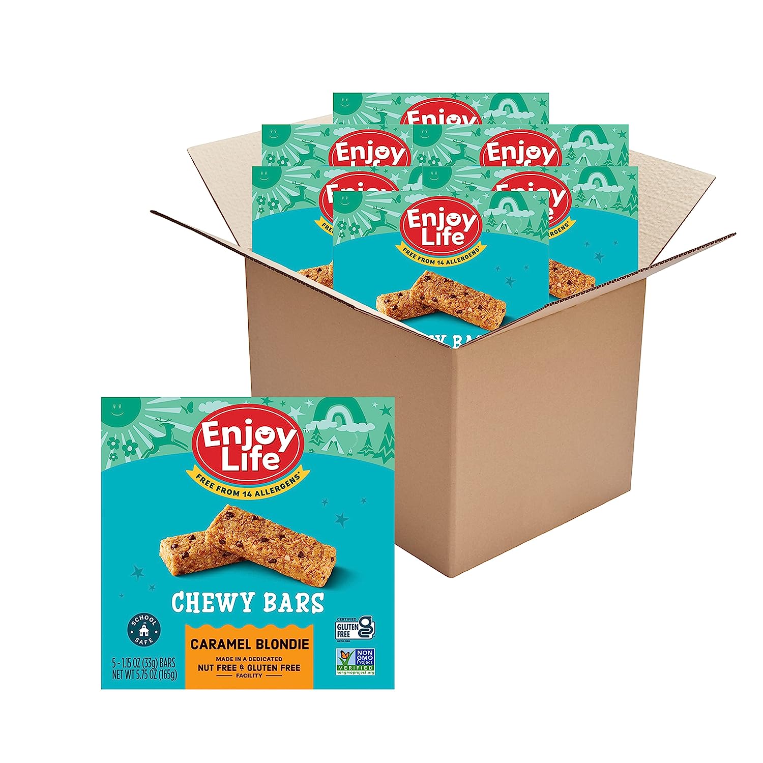 For great-tasting, nut free bars that are allergy friendly, choose Enjoy Life Cocoa Loco Chewy Bars. Decadent chocolate with a brownie texture offers sweet, delectable chocolate snacks. Balanced with a specially developed blend of gluten-free flours, these certified gluten free snacks have the soft, chewy texture of granola bars that everyone can enjoy. Baked with high quality ingredients in a dedicated nut-free and gluten-free facility, these school-safe bars are free from the 14 most common food allergens. Each of these high-quality snacks is free from wheat, peanuts, tree nuts, dairy, soy and egg, making delicious allergy friendly snacks that you can trust and love. These kosher snacks are Non-GMO Project Verified as well as certified gluten free and halal, making them a worry-free treat. Made locally in North America's largest allergy-friendly bakery with high-quality, free-from ingredients, Enjoy Life Chewy Bars give you permission to eat freely.