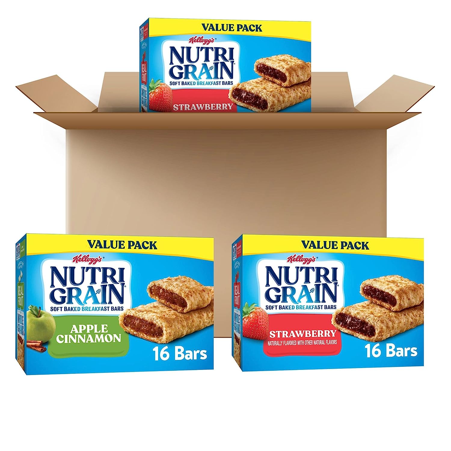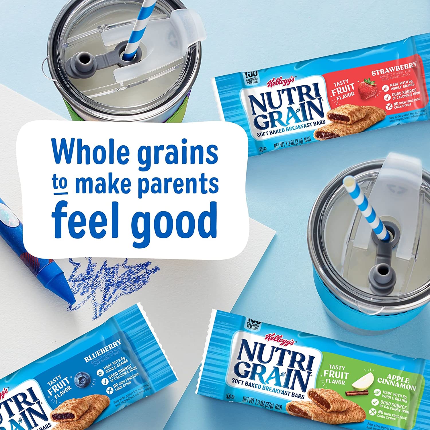 Enjoy this variety pack of Nutri-Grain Soft Baked Breakfast Bars as a delicious way to rise and thrive. With three invigorating flavors, it's a snap to start your morning with Apple Cinnamon, Blueberry, or Strawberry-flavored bars. With 8g of whole grain in every 37g serving, Nutri-Grain bars are also a good source of eight vitamins and minerals. Nutri-Grain bars are travel-ready, and make a perfectly sized accompaniment to backpacks, tote bags; pack long for busy, on-the-go moments. They’re not just for breakfast, biting into a bar could be exactly the pick-me-up you need midway through a long day. Nutri-Grain Soft Baked Breakfast Bars not only make a great addition to your own daily routine, but they’re also a terrific choice for when you're packing goodie bags, gift baskets, or care packages. No matter when you choose to enjoy them, it's always the perfect time to delight in a Nutri-Grain soft baked breakfast bar.