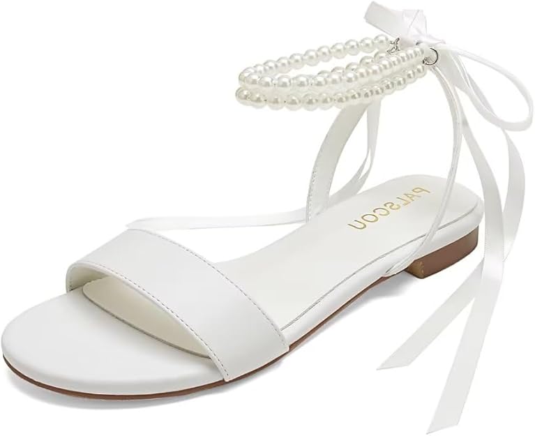 Wedding Shoes for Bride Flat Sandals Open Toe Pearl Bridal Shoes Flat Wedding Sandals