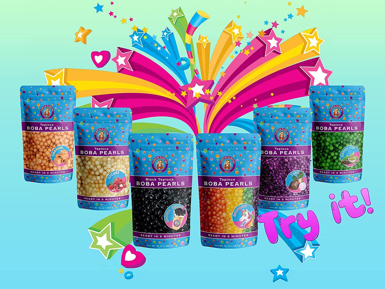 Boba / Black Tapioca Pearls D.I.Y. Reddy in 5 Minutes By Buddha Bubbles Boba LLC 1 Kilo (2.2 Pounds) | (1000 grams) Boba / Black Tapioca Pearls DIY Ready in 5 Minutes Brand: Buddha Bubbles Boba LLC 1 Pound (16 ounces) EASY TO MAKE – Buddha Bubbles Boba 5 Minute Boba Pearls are easy to make. With our easy to follow instructions, you will have great tasting Bubble Teas in 5 minutes. GREAT FLAVOR – Our tapioca pearls are a great addition to any Bubble Tea drink. Follow the instructions on the back of our packaging for the best results. PREMIUM QUALITY – Buddha Bubbles Boba products are made with authentic and quality ingredients. We are the first company in the world to offer DIY Boba Tea kits. KITS AVAILABLE - Take a look at our Amazon Shop for Boba Tea Kits and all other Boba Tea items.