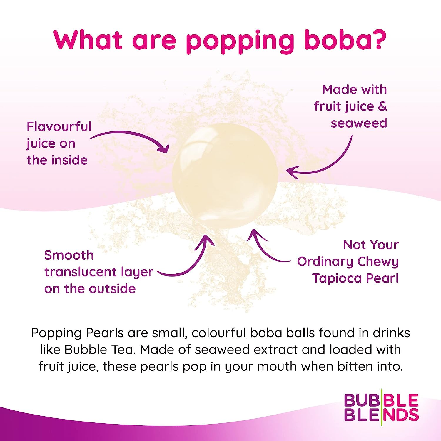 • Guilt-Free Sweet Treats - Vegetarian-friendly, non-dairy, fat, and gluten-free, our popping boba pearls are made from plant-based ingredients that are pleasantly fruity. They’re also free from artificial colors and additives.