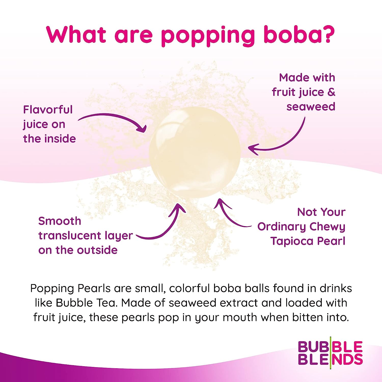 • Quality Ingredients - Made with real fruit juice and the highest quality ingredients, these refreshingly sweet, burst-in-your-mouth boba popping pearls are sure to satisfy your sweet tooth cravings.