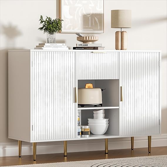 47.2" Large Sideboard Buffet Cabinet with 2 Doors & Drawer, Coffee Bar Cabinet with Adjustable Shelves, Liquor Cabinet with Storage, Accent Cabinet Console Table for Living Dining Room, White