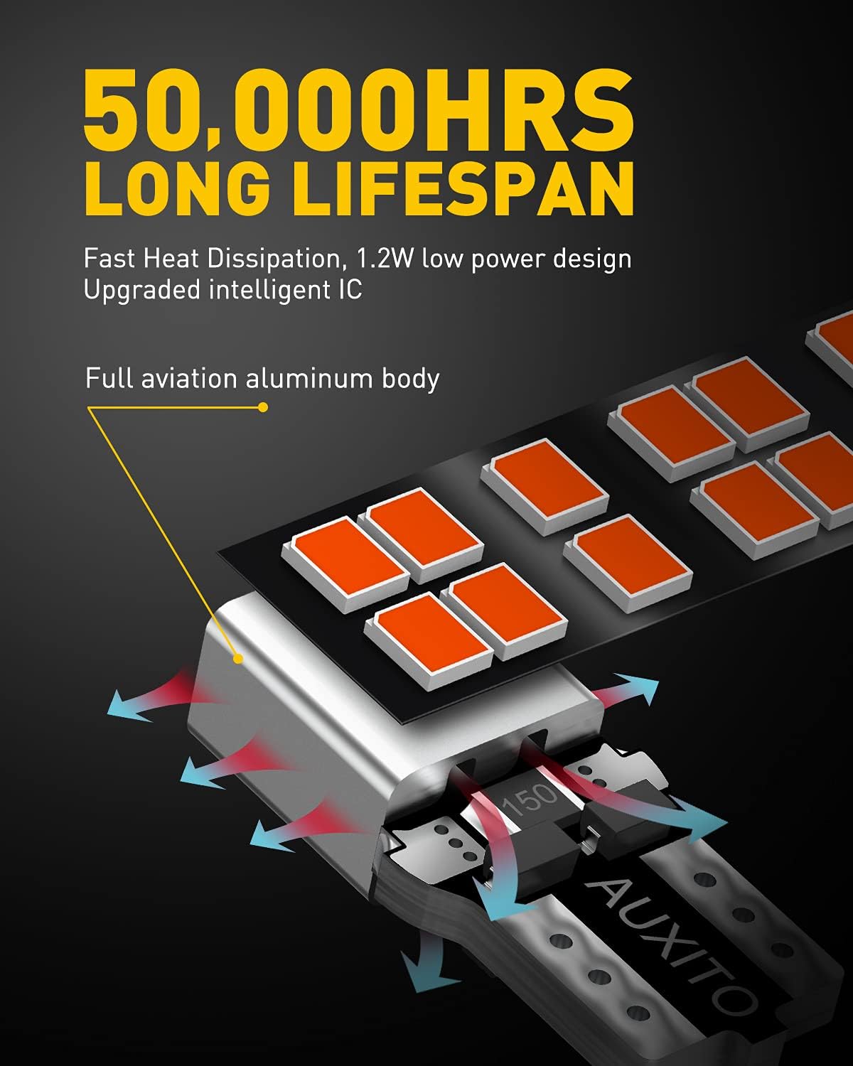 • 50,000HRS LIFESPAN: Full aluminum body design for quicker heat dissipation. 1.2W/Bulb low energy consumption for stable performance, extends lifespan up to 50,000hrs
