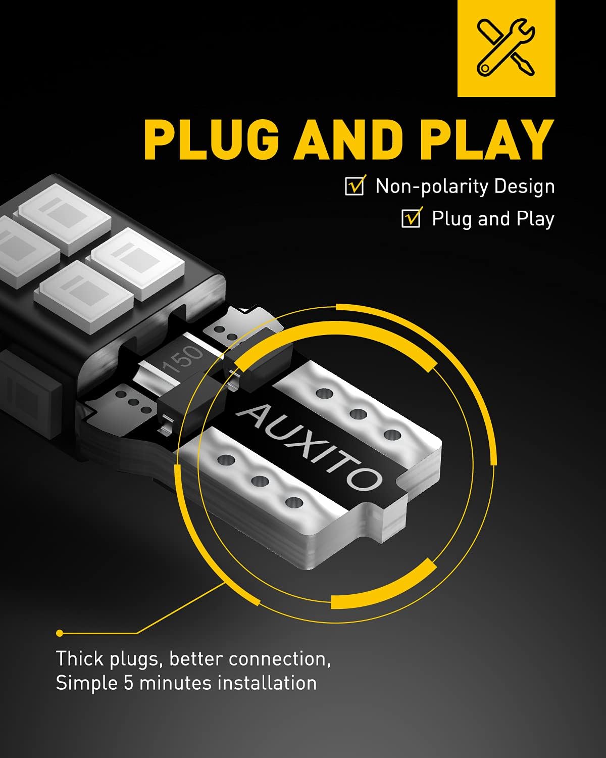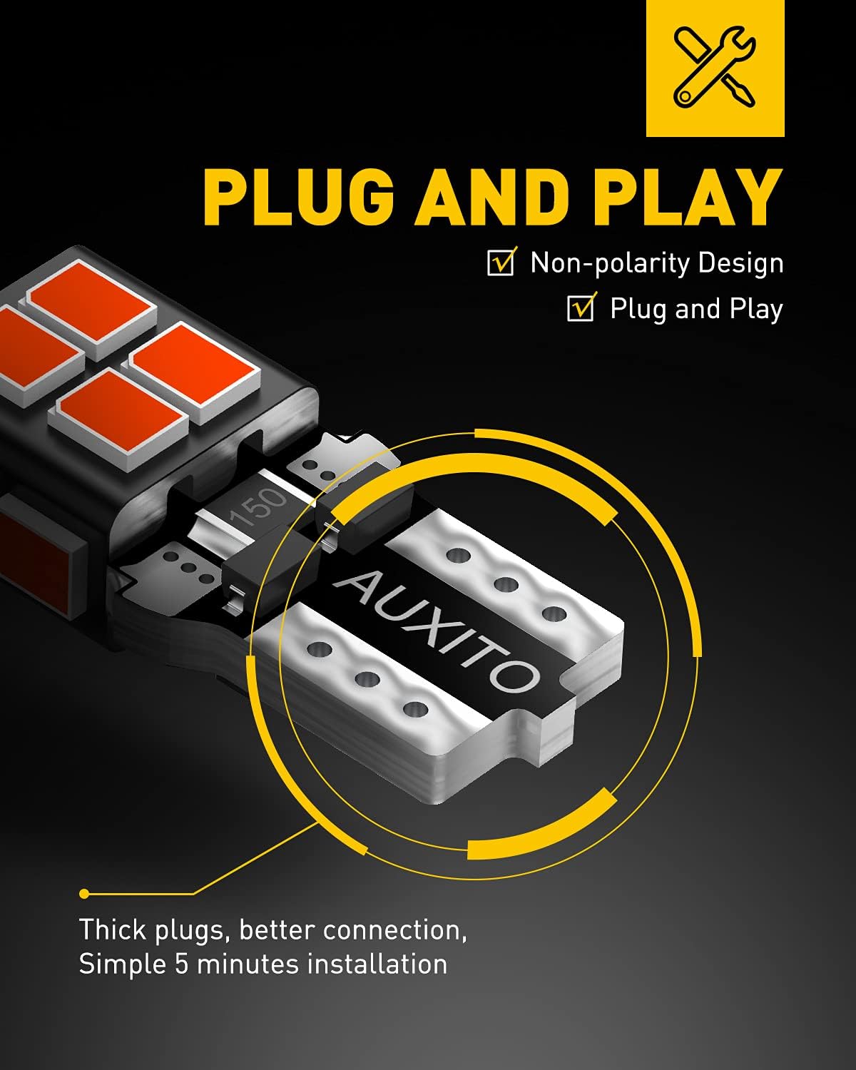 • SIMPLE INSTALL: Non-polarity design, plug and play for instant bright light in your dome light, map light, parking light, door courtesy light, license plate tag light, trunk cargo light, side marker light on your 12V cars or trucks
