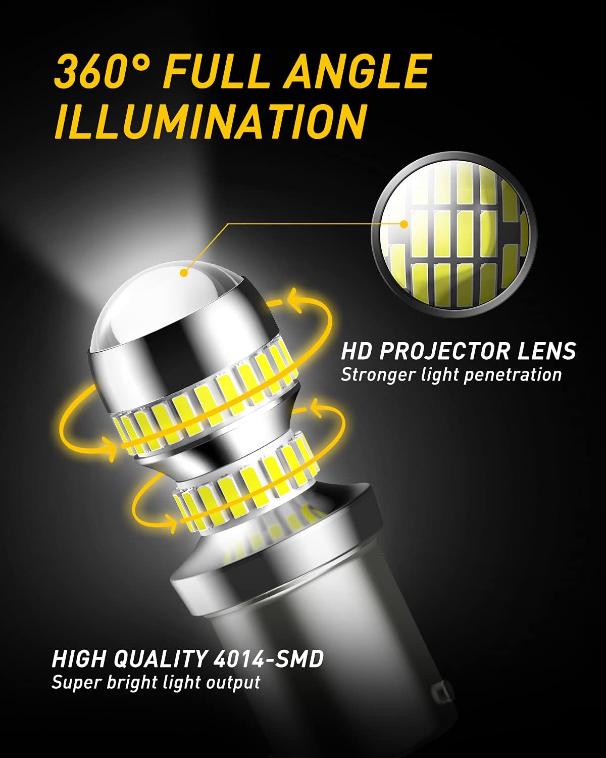 • Light Output: About 1300 lumens per 912 bulb, 2600 lumens for both 912 921 led bulb reverse lights. 360° full view angle, with HD projector, 400%+ brighter than stock 921 lights